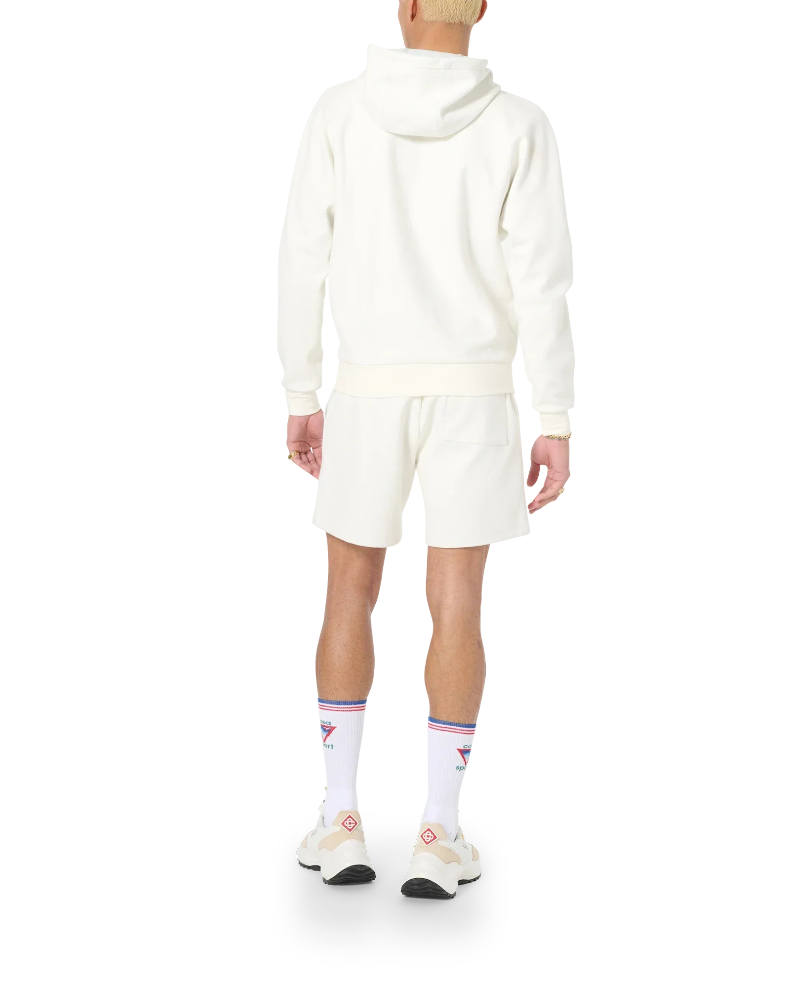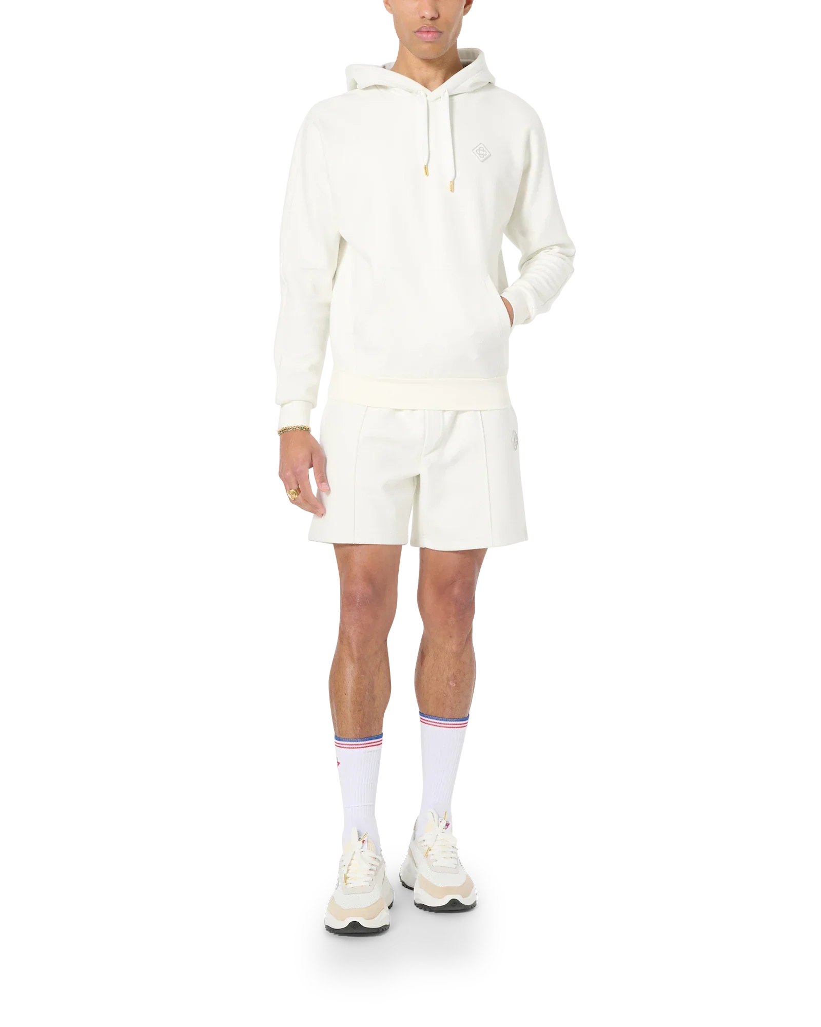 The off-white logo hooded sweatshirt features the house's signature diamond logo patch on the left chest. Completed with a crewneck, gold-tipped drawstring fastening, long sleeves and Casablanca Paris branded label, designed for a relaxed fit.