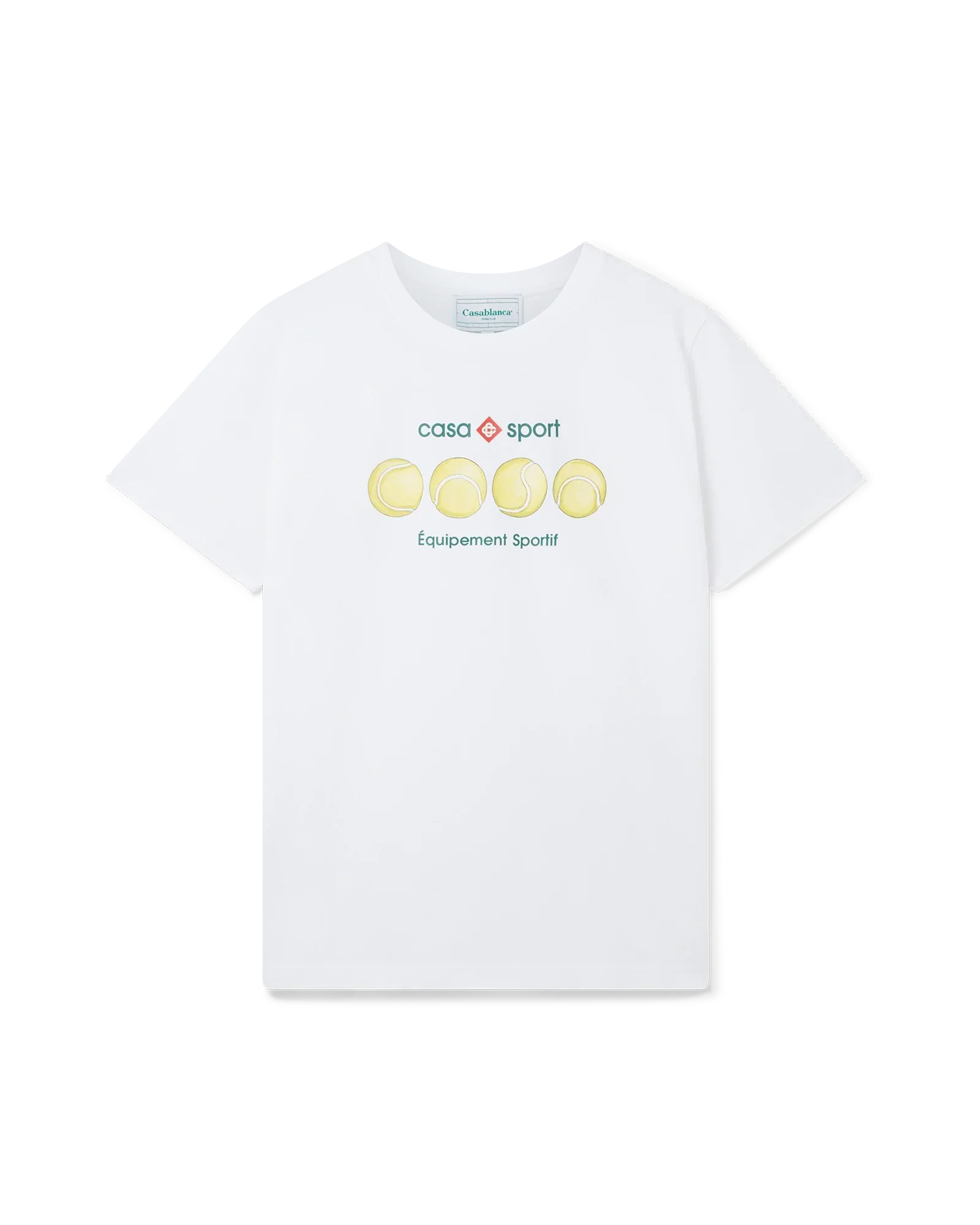 The Casa Sport Tennis Balls screen-printed organic cotton t-shirt features seasonal artwork incorporating the house's signature tennis and Casa Sport iconography. Completed with a classic crewneck, short sleeves and Casablanca Paris branded label, designed for a relaxed fit.