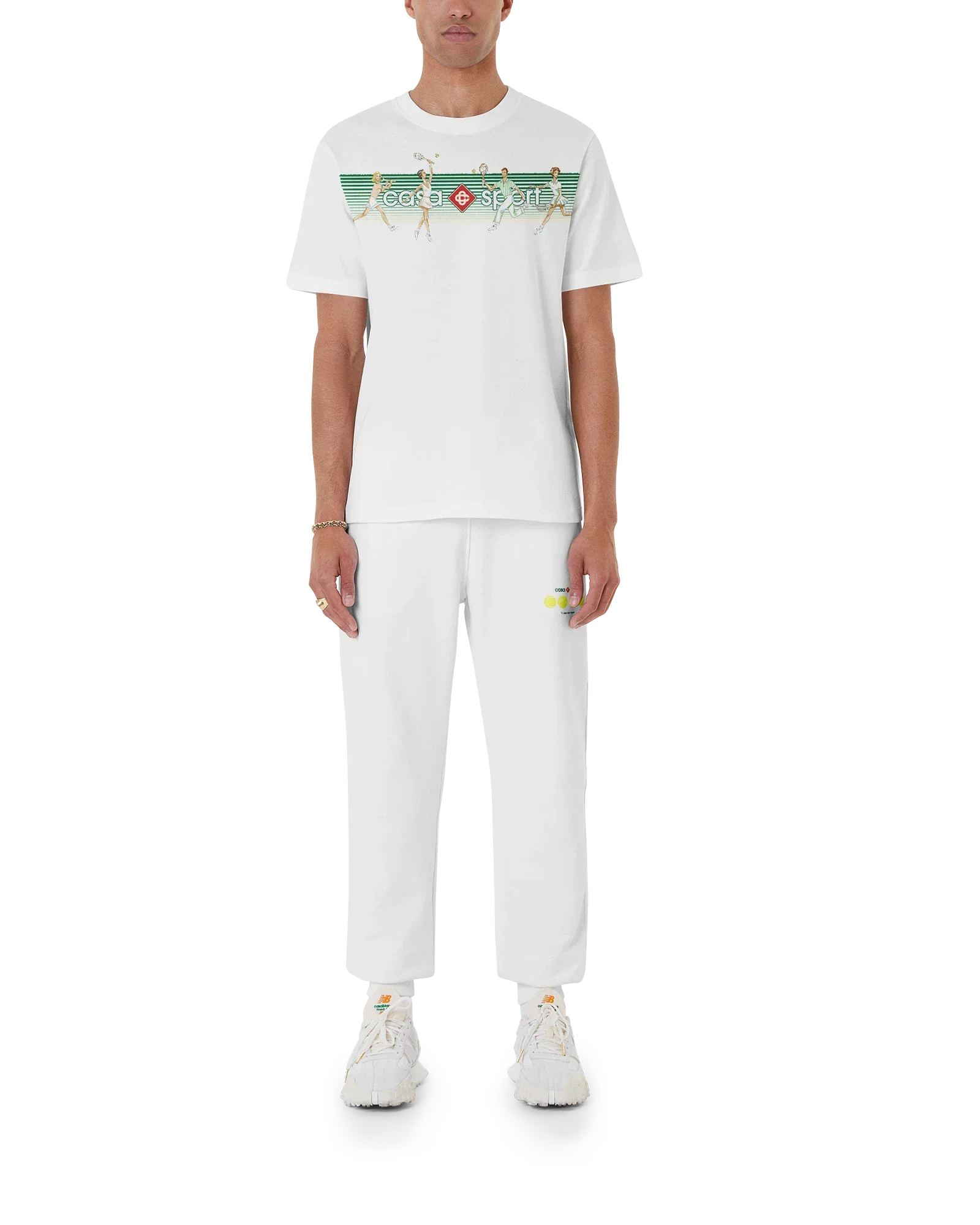 The Playful Stripes screen-printed organic cotton t-shirt features seasonal artwork incorporating the house's signature tennis and Casa Sport iconography. Completed with a classic crewneck, short sleeves and Casablanca Paris branded label, designed for a relaxed fit.