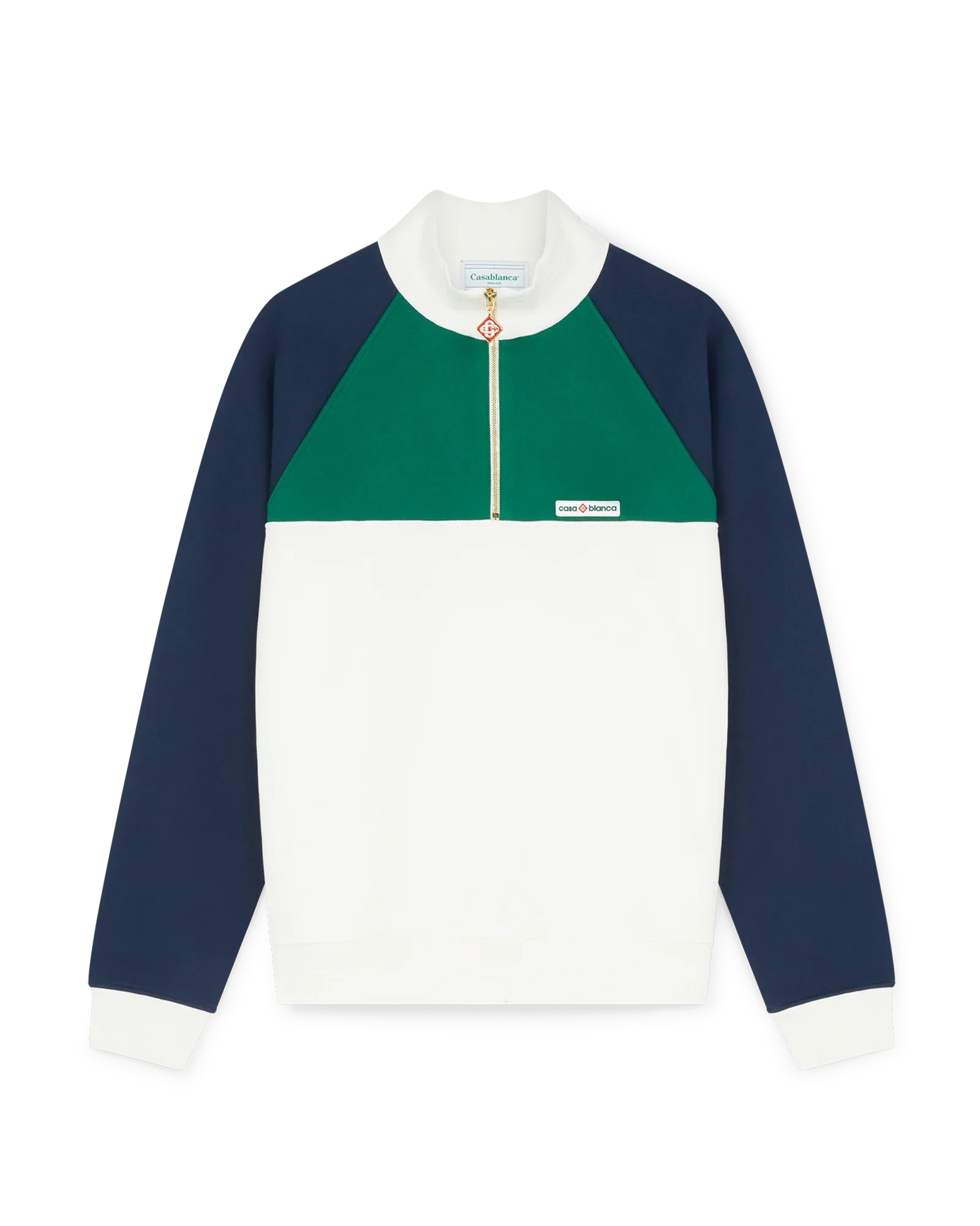 The quarter zip sweatshirt is a sportswear staple featuring a colour block contrast with the house's signature Casa Sport logo. Finished with a Greek laurel artwork on collar, rib cuffs and hem with quarter zip closure.