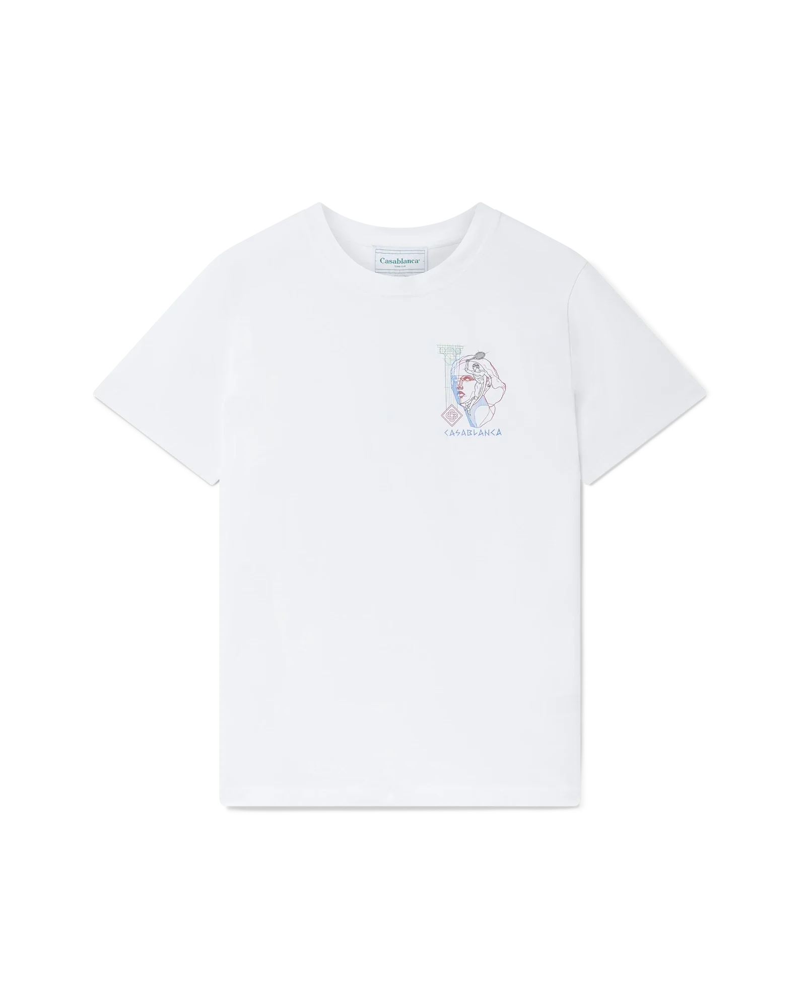 The Tennis Play in Progress t-shirt is a short-sleeved printed design, taking inspiration from architectural sketches showing all the linework, crafted from a jersey cotton fabric. Completed with the house's seasonal artwork inspired by tennis, architecture, and ancient Greece, Casablanca logo written in an ancient Greek style text, and a classic crew neck.