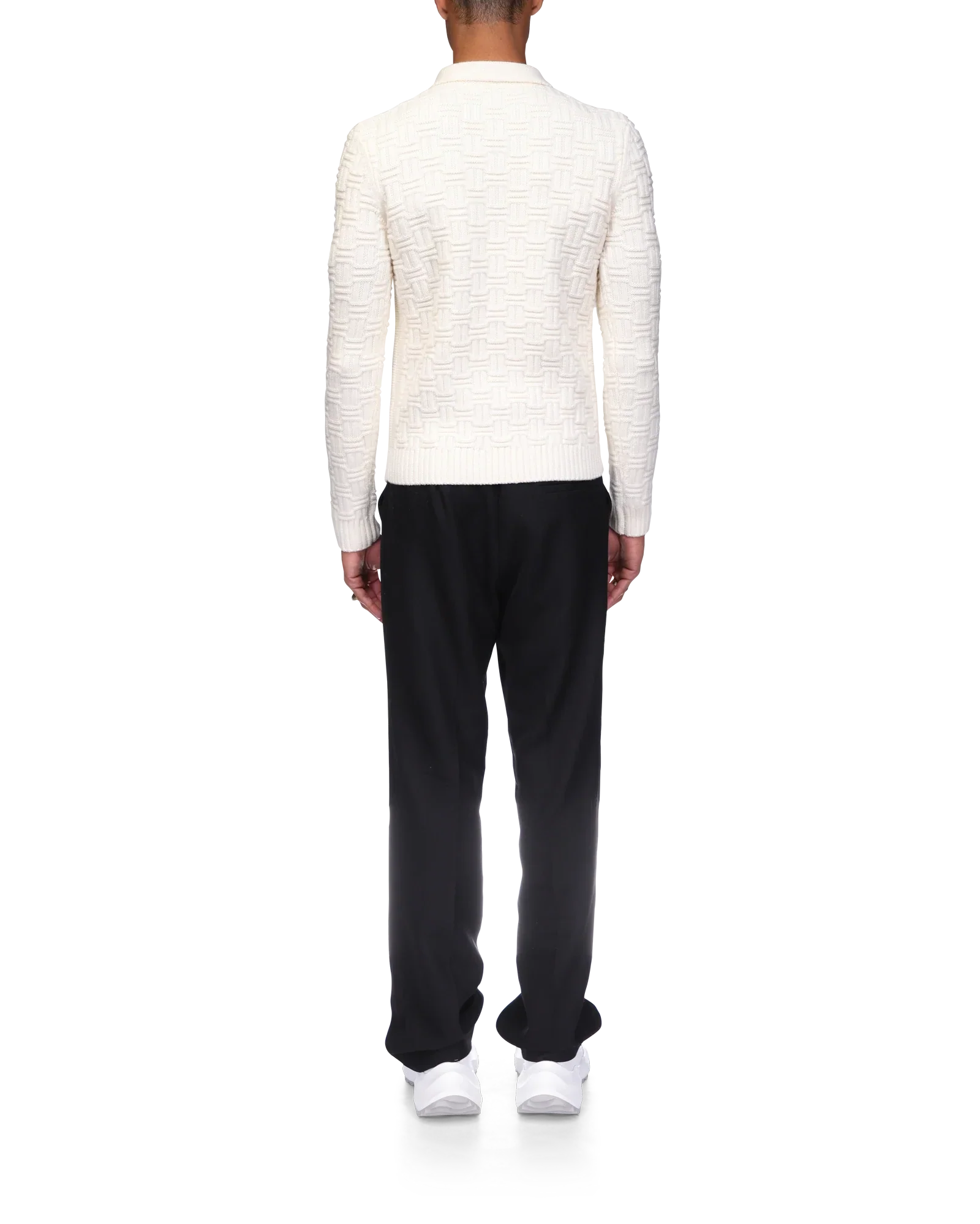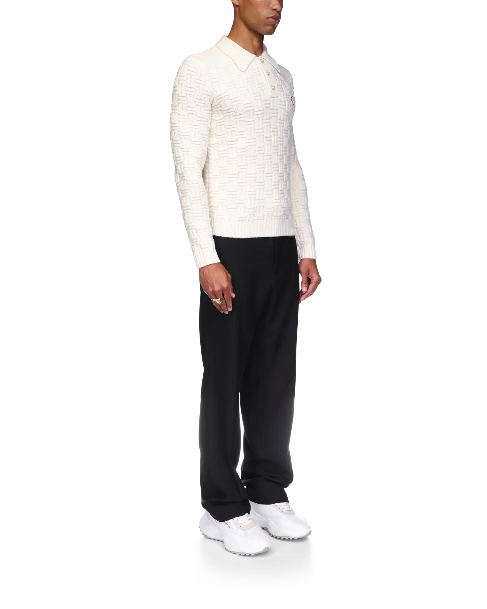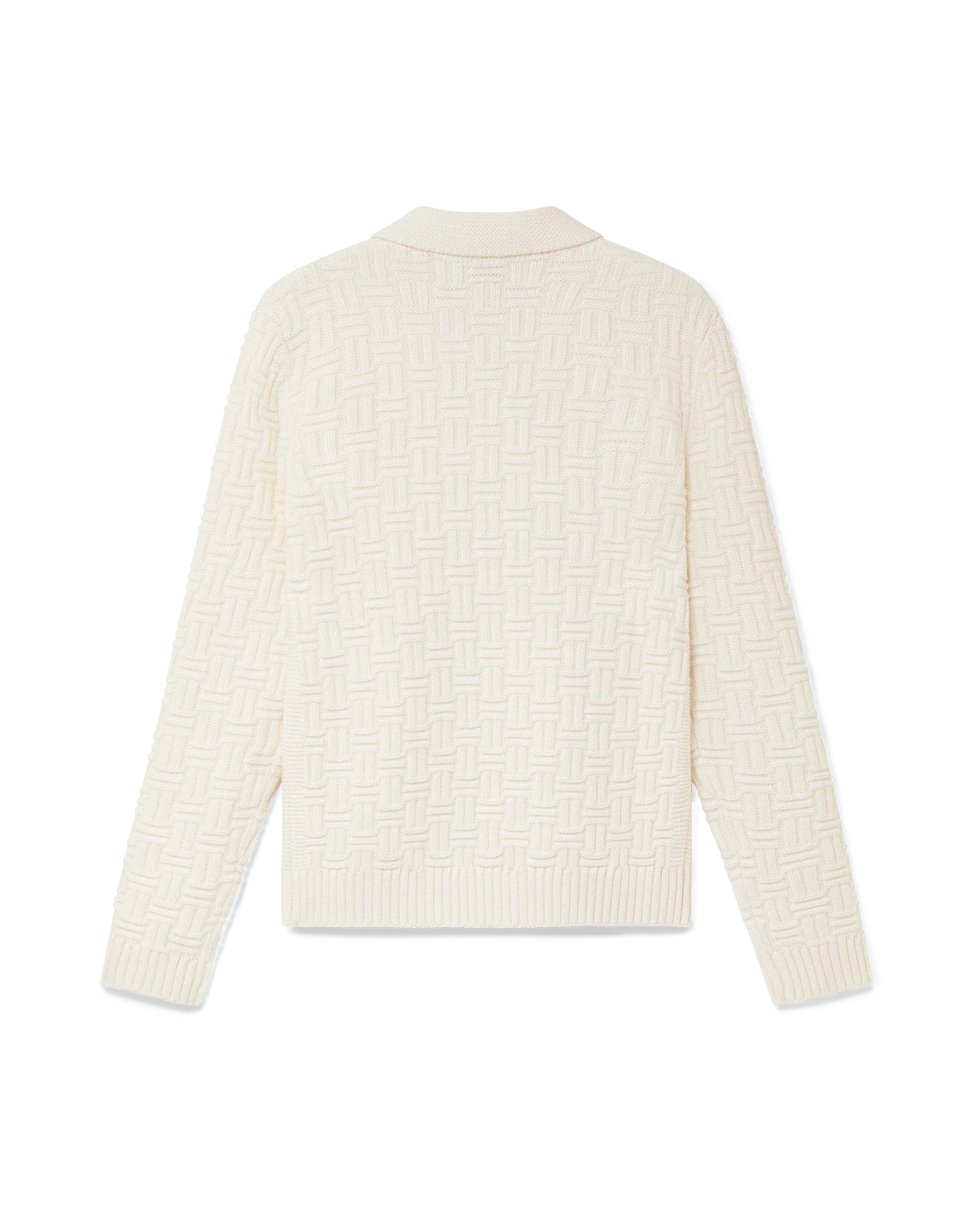 The column knit polo is a long-sleeved woven design crafted from a soft luxurious merino wool. Completed with the house's diamond logo, signature gold rim pearl buttons, a collar, and rib cuffs and hem detail.