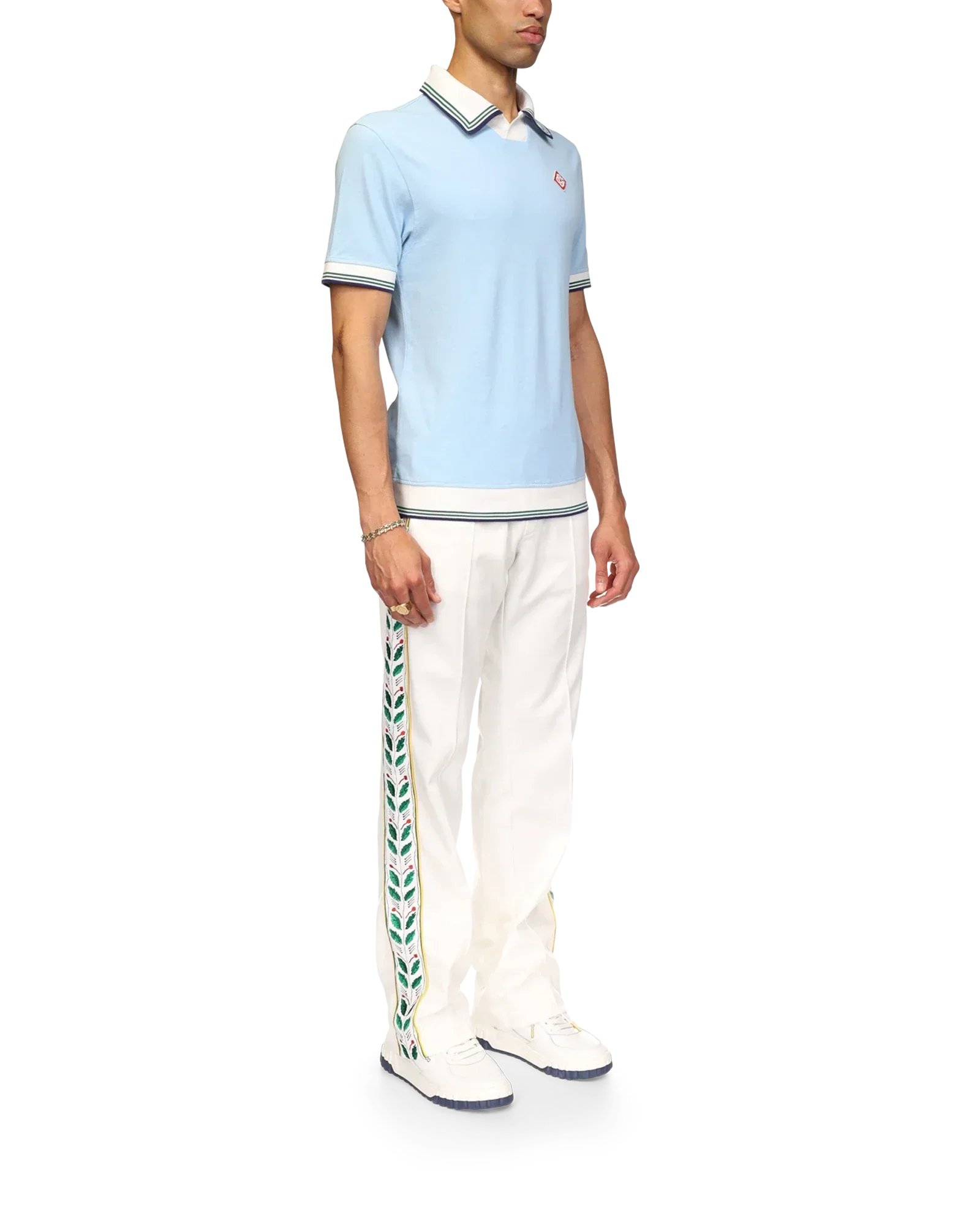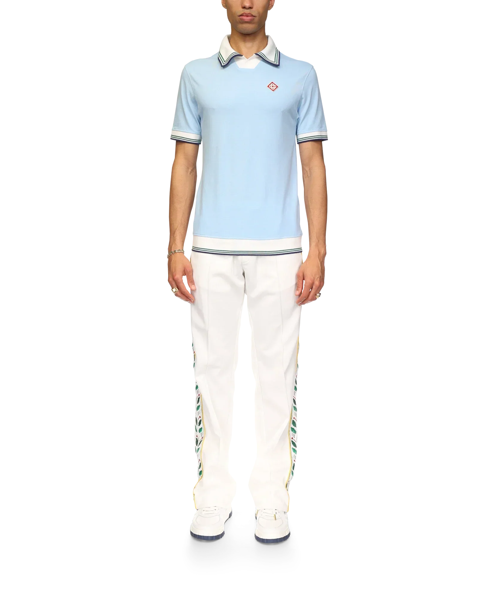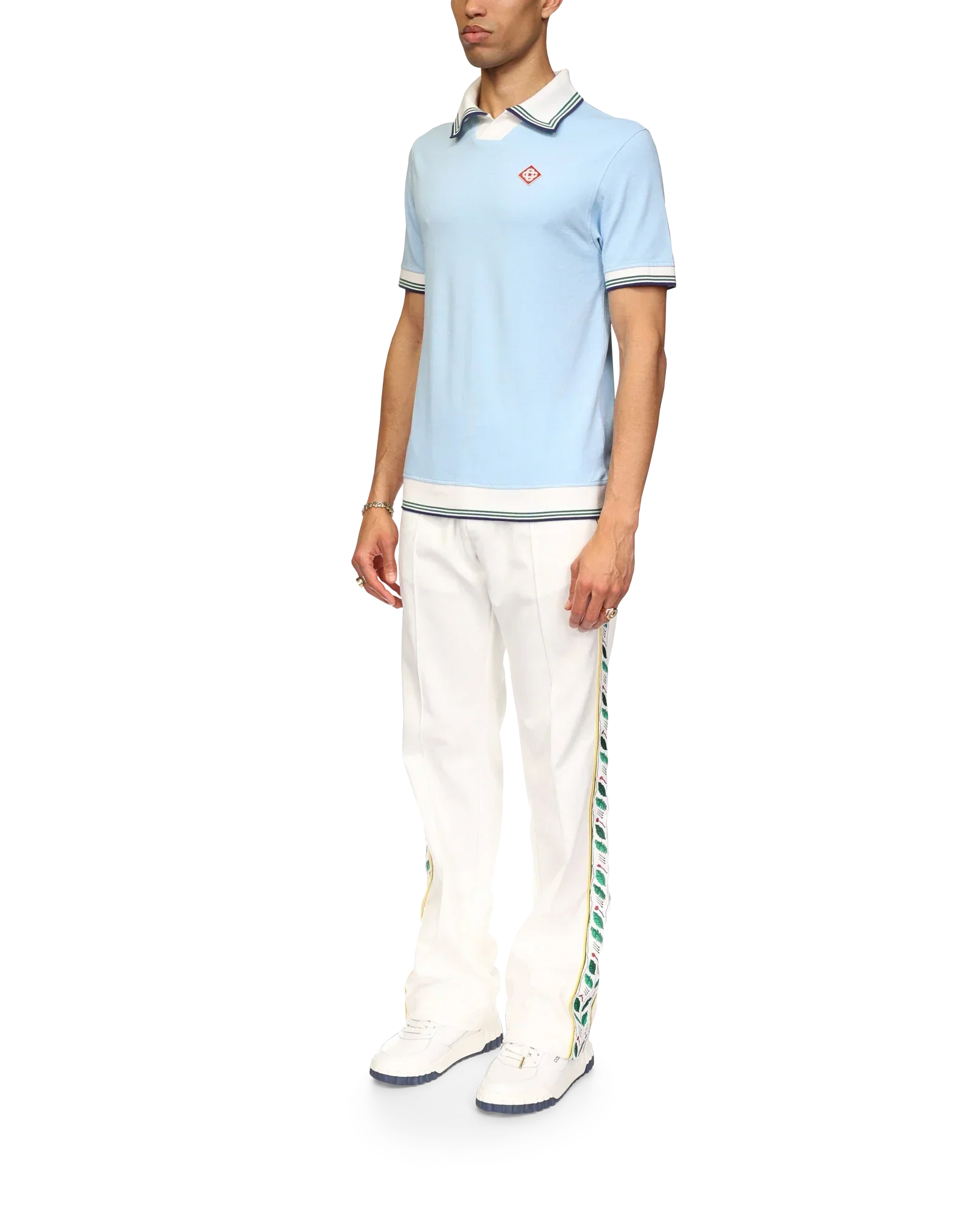 The pique polo shirt is a short-sleeve design crafted from an organic cotton pique fabric, featuring the house's signature diamond logo. Completed with contrast rib cuffs, hem and v-neck with a collar with green, navy and white stripe edge detail.