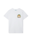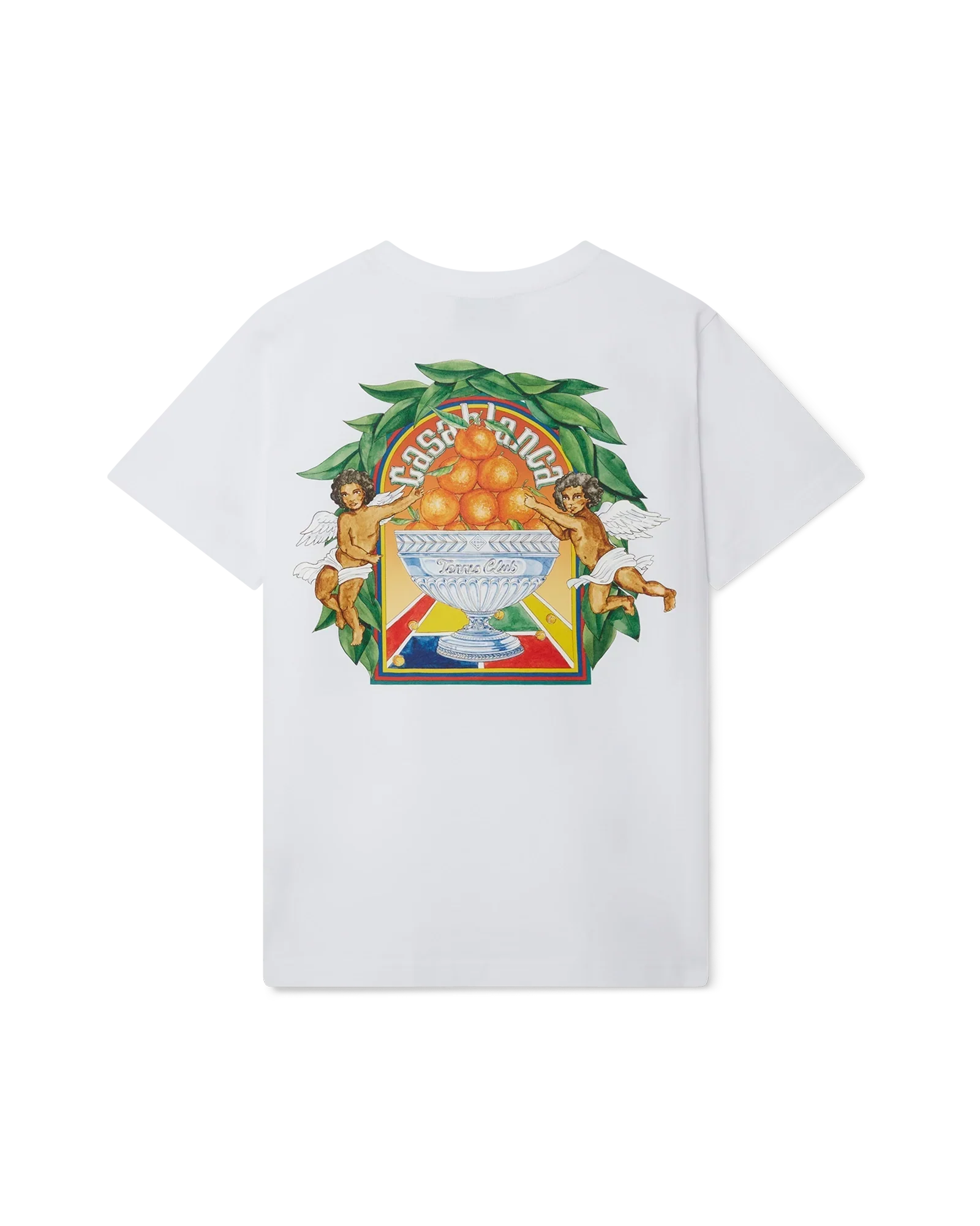 The Triomphe D'Orange t-shirt features a print of the house's signature artwork incorporating tennis and our orange pyramid repeated in a larger print on the back. Crafted from 100% organic cotton and completed with a classic crewneck and Casablanca branded label.
