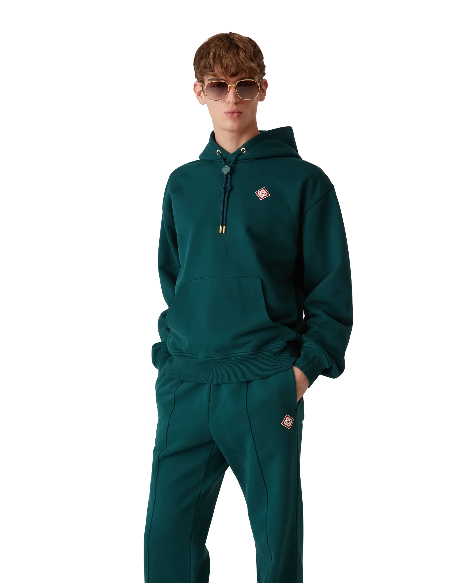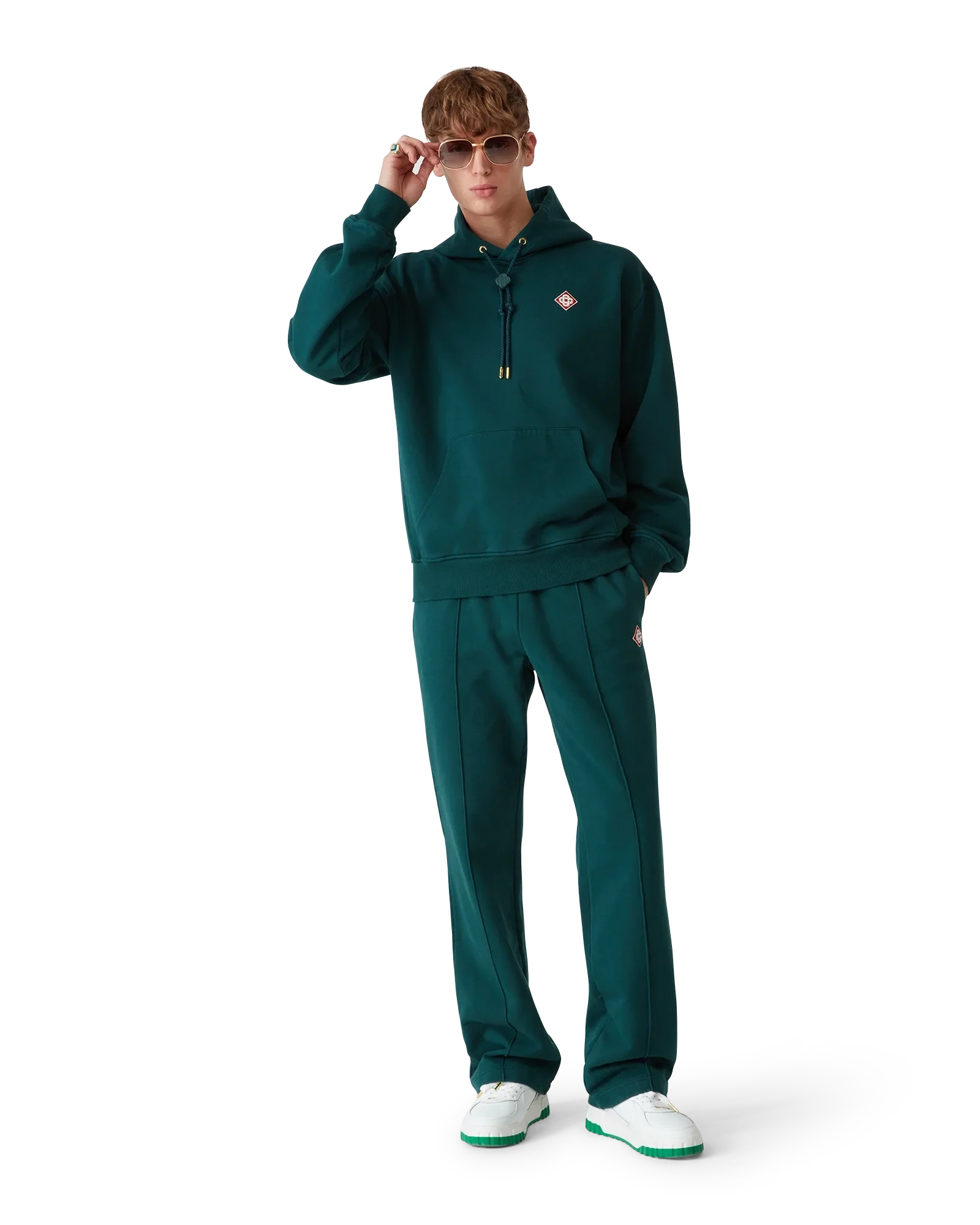 The diamond logo hooded sweatshirt is a classic design in the house's signature evergreen colourway. Completed with the diamond logo, a kangaroo pocket, a hood with gold-tipped eyelets and drawstring, branded toggle for secure fastening, rib cuffs, side panels and hem.