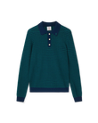The mini wave polo shirt is a classic long-sleeve design crafted from merino wool fabric. Completed with rib collar, cuffs, hem, placket, and signature gold rim pearl buttons.