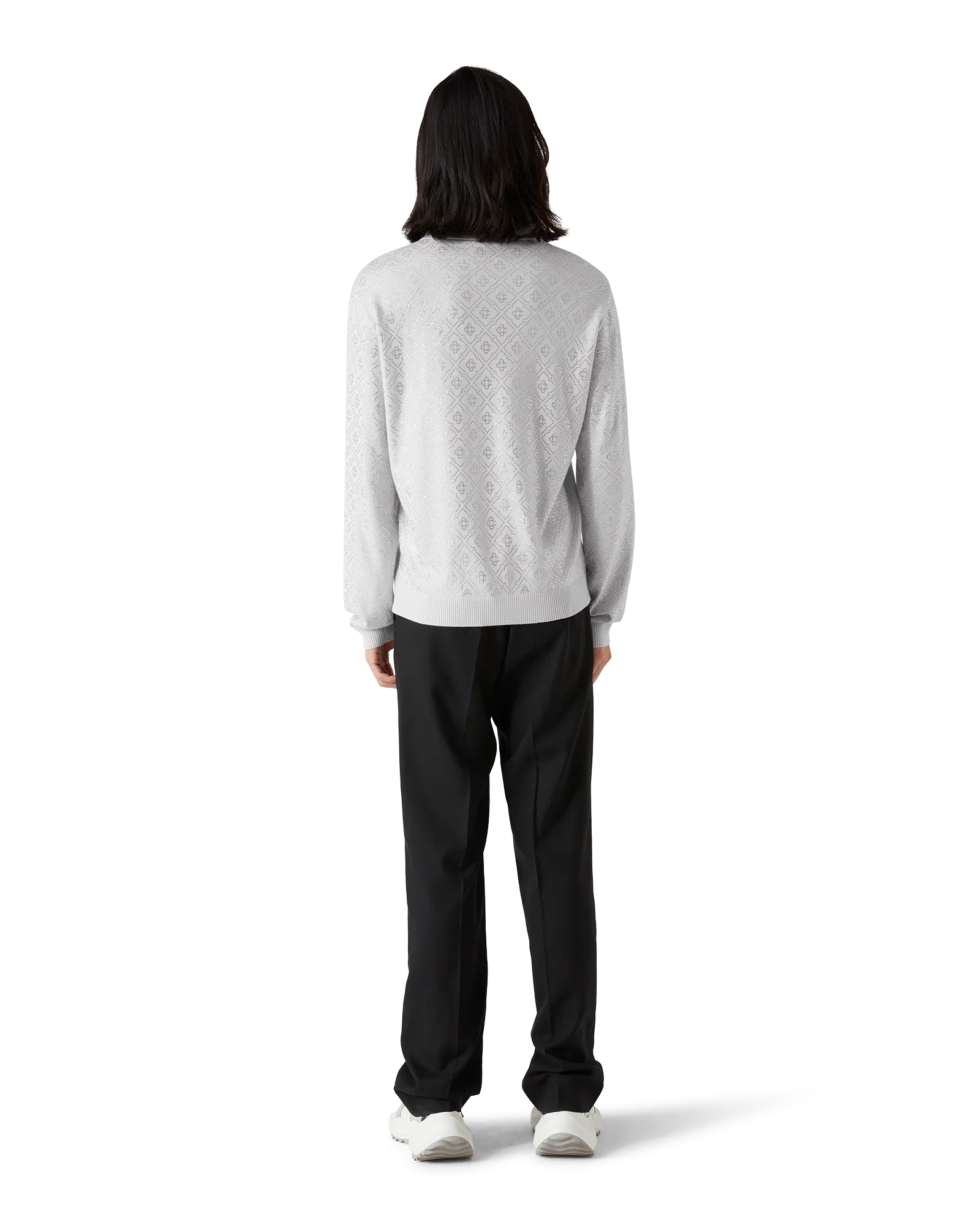 The crystal monogram knit polo shirt is a long-sleeve design crafted from merino wool fabric, featuring the house's crystal monogram. Completed with the house's signature gold rim pearl buttons, a button closure, and ribbed collar, cuffs, and hem.