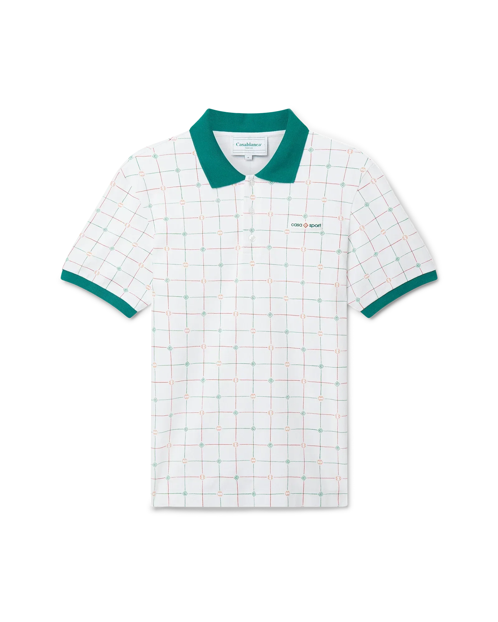 The white Casa Sport Polo Shirt is a knitted style in our signature tennis club check. The 100% organic cotton knit style is complete with green detailing at the collar and sleeves and is intended to be worn with a slim fit.