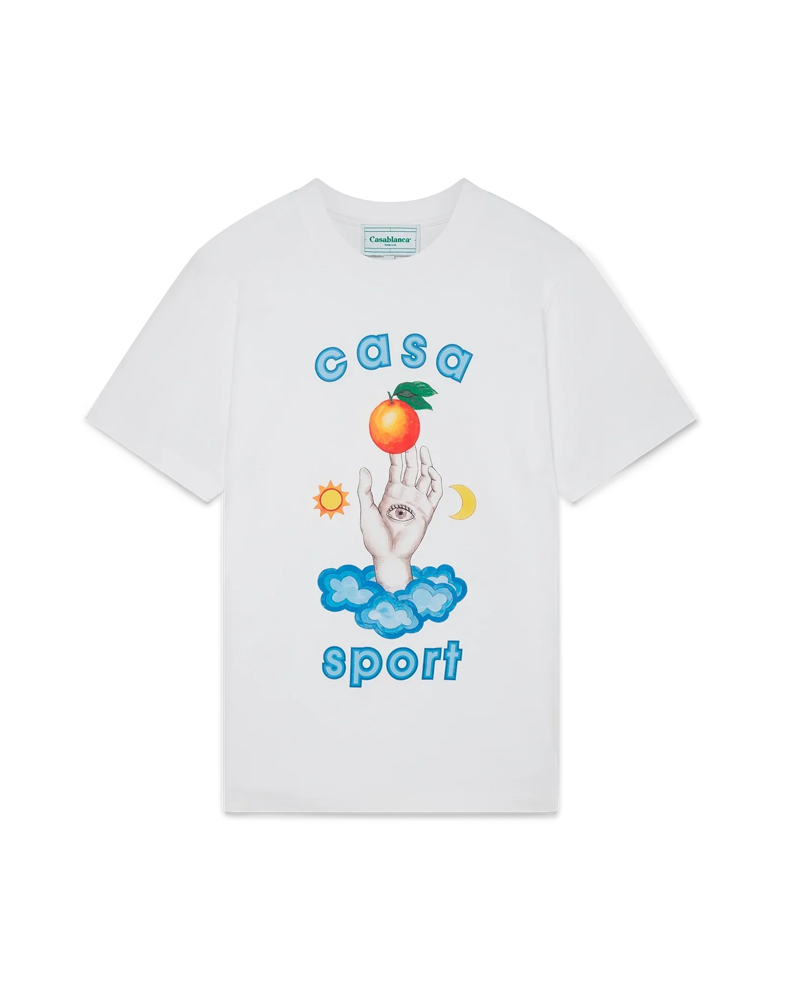 The Casa Talisman black screen-printed organic cotton t-shirt features seasonal artwork incorporating the house's Casa Sport story. Completed with a classic crewneck, short sleeves and Casablanca Paris branded label, designed for a relaxed fit.