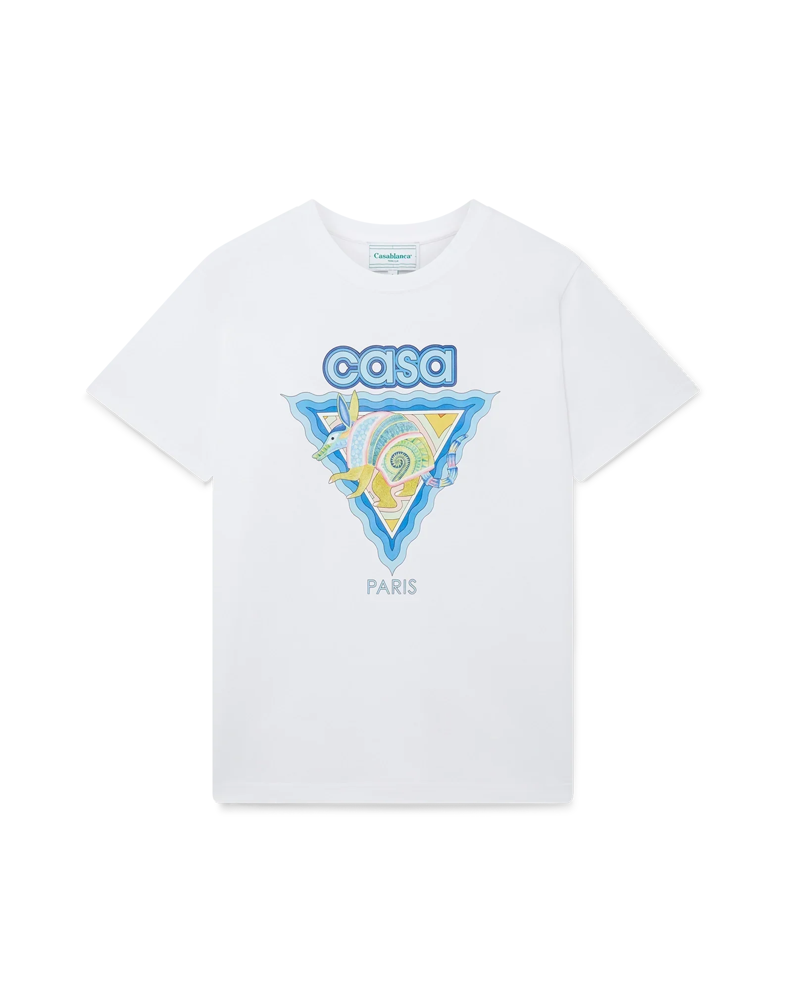 The Alebrije Armadillo screen-printed organic cotton t-shirt featuring seasonal artwork inspired by the work of Mexican artist Pedro Linares. Here, the fantastical creatures illustrate a hallucinatory journey through the animal kingdom. Completed with a classic crewneck, short sleeves and Casablanca Paris branded label, designed for a relaxed fit.