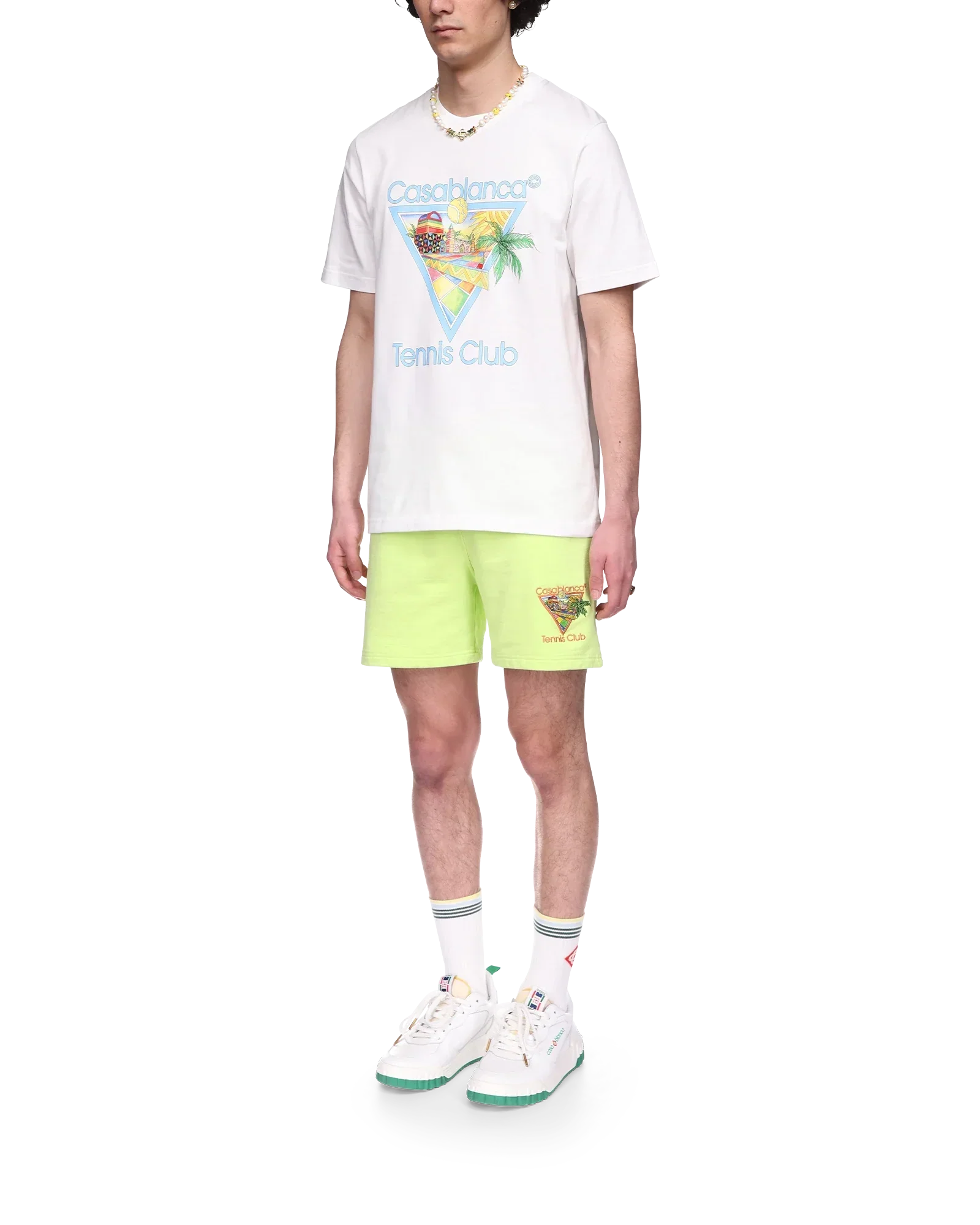 The Afro Cubism Tennis Club t-shirt is a printed design inspired by the warmth of Nigeria’s traditional architecture; the beauty of the traditional and organic art is represented as a landscape while keeping our traditional layout - the palm tree, the perspective of the building and a tennis court. Crafted from organic cotton, complete with a classic crew neck.