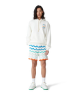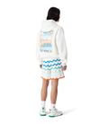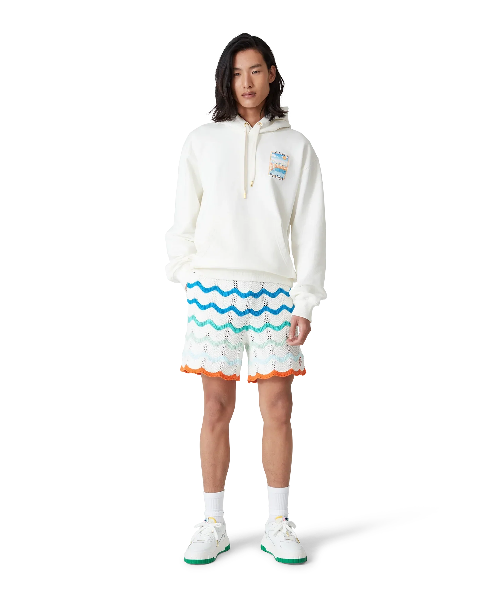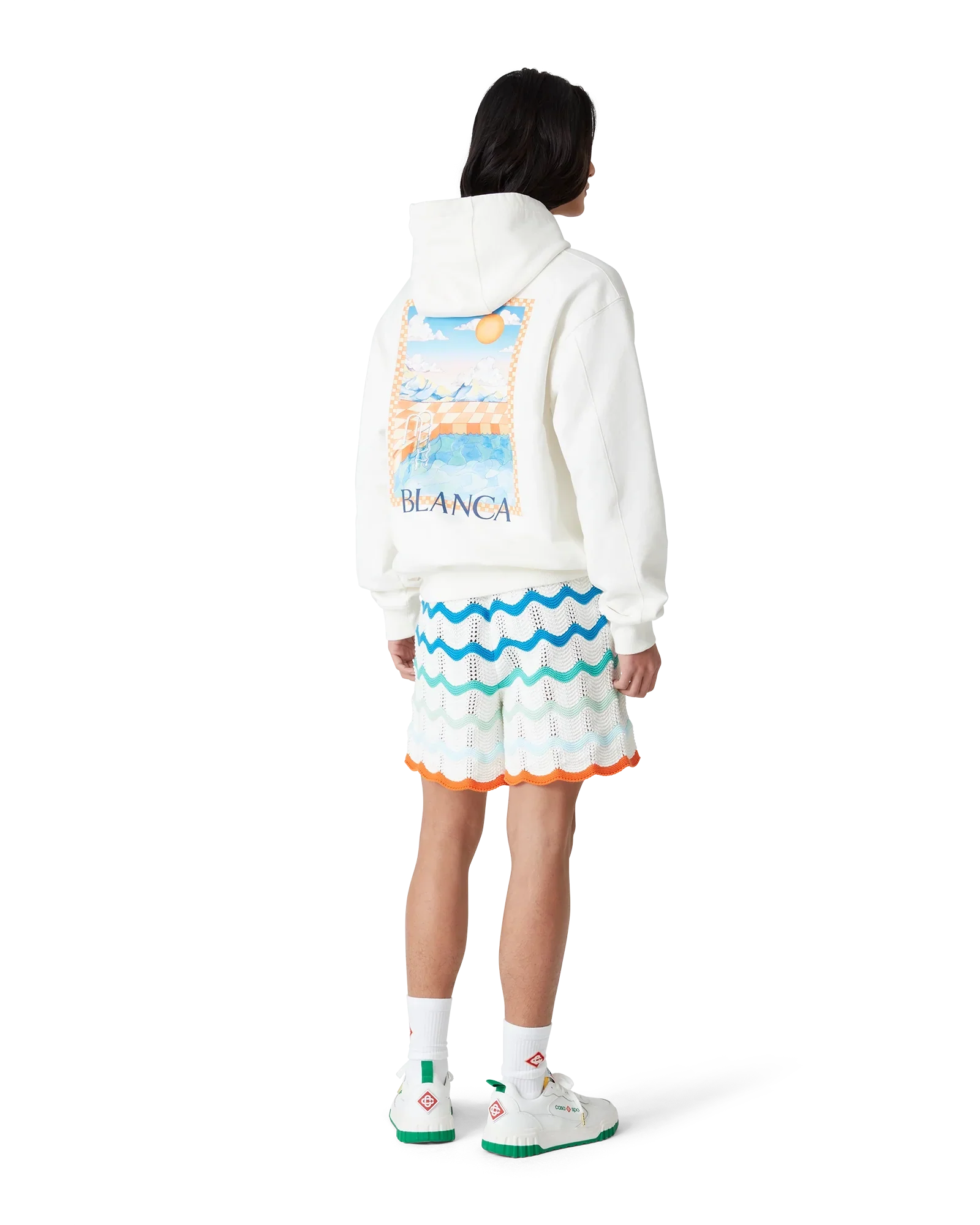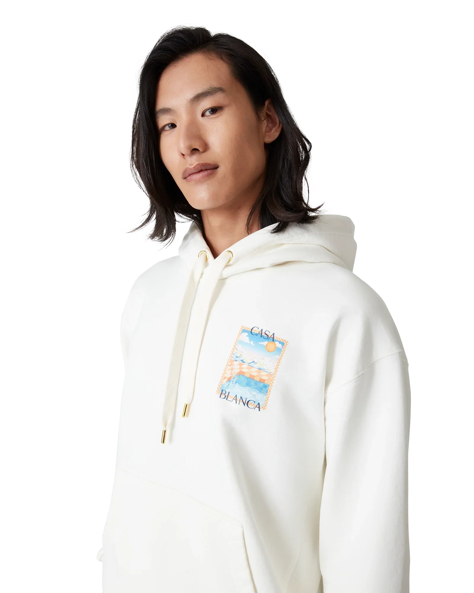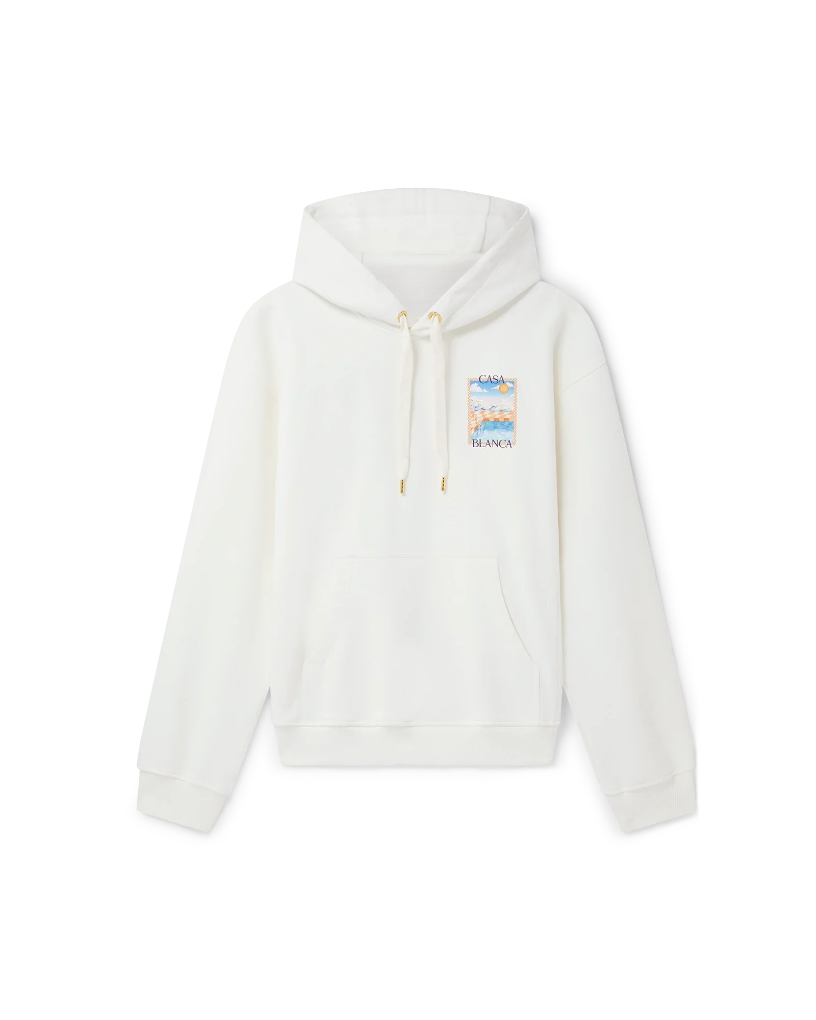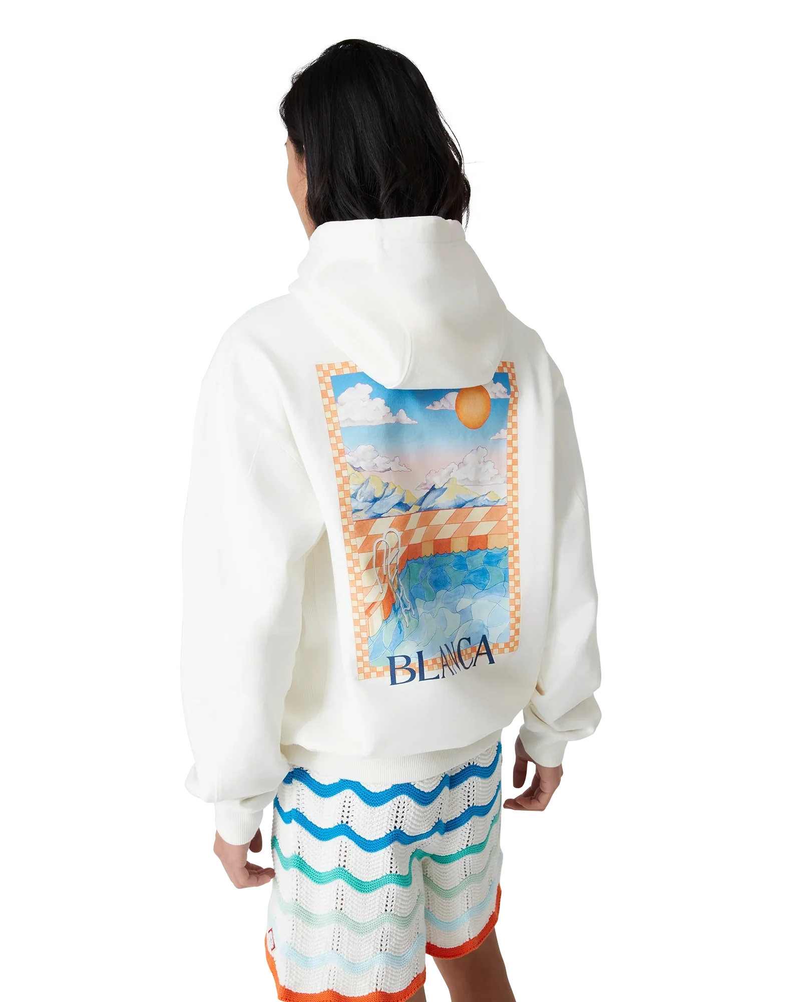 The Surreal Pool hooded sweatshirt is a classic long-sleeve design crafted from organic cotton fabric and feature hand-painted scenes created especially for the collection. Completed with a hood, gold-tipped drawstring fastening, and rib cuffs, collar, and hem.
