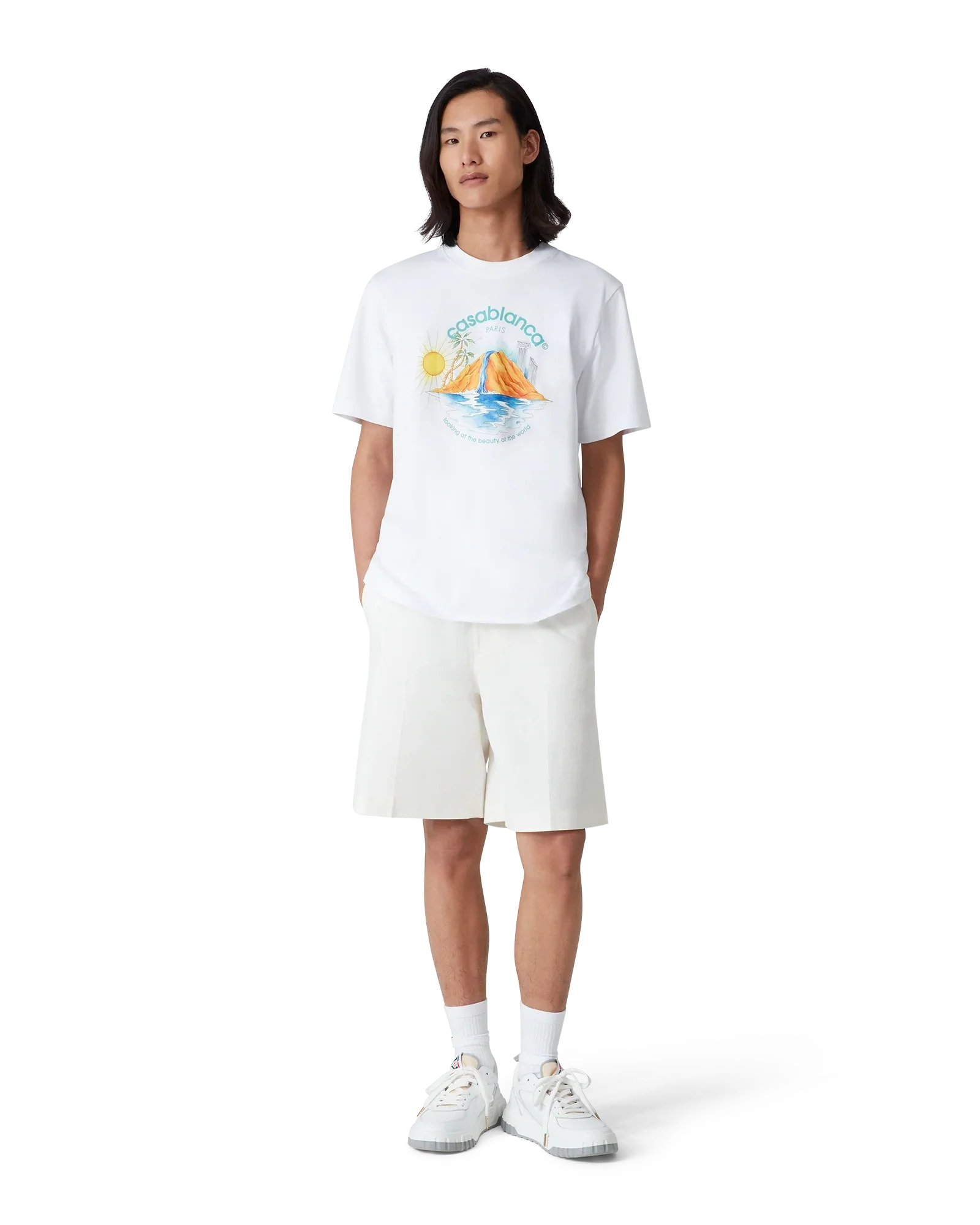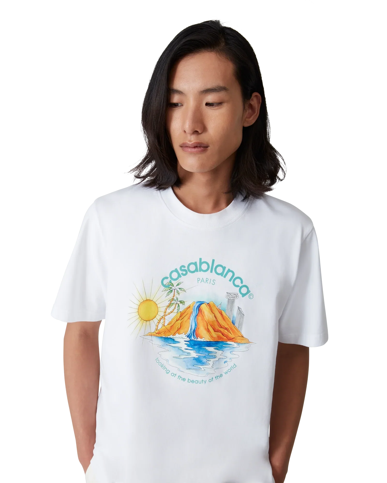 The Oasis t-shirt is a short-sleeve printed design crafted from organic cotton fabric, featuring the house's seasonal artwork with design elements of nature, architecture, and tennis. Completed with a classic crew neck.