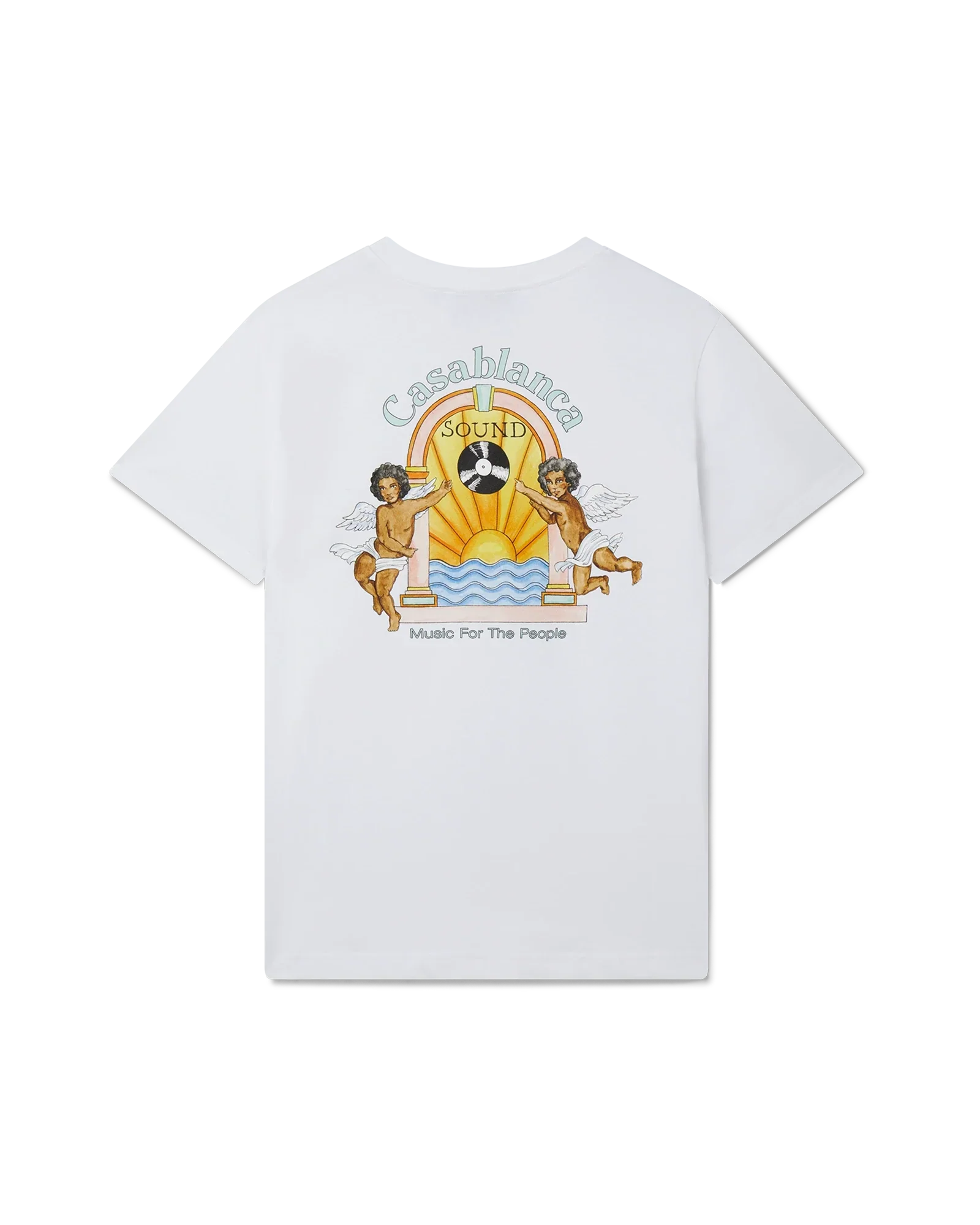 The Studio de Musique screen-printed organic cotton t-shirt features seasonal artwork incorporating Casablanca symbology with Arabic iconography. Completed with a classic crewneck, short sleeves and Casablanca Paris branded label, designed for a relaxed fit.