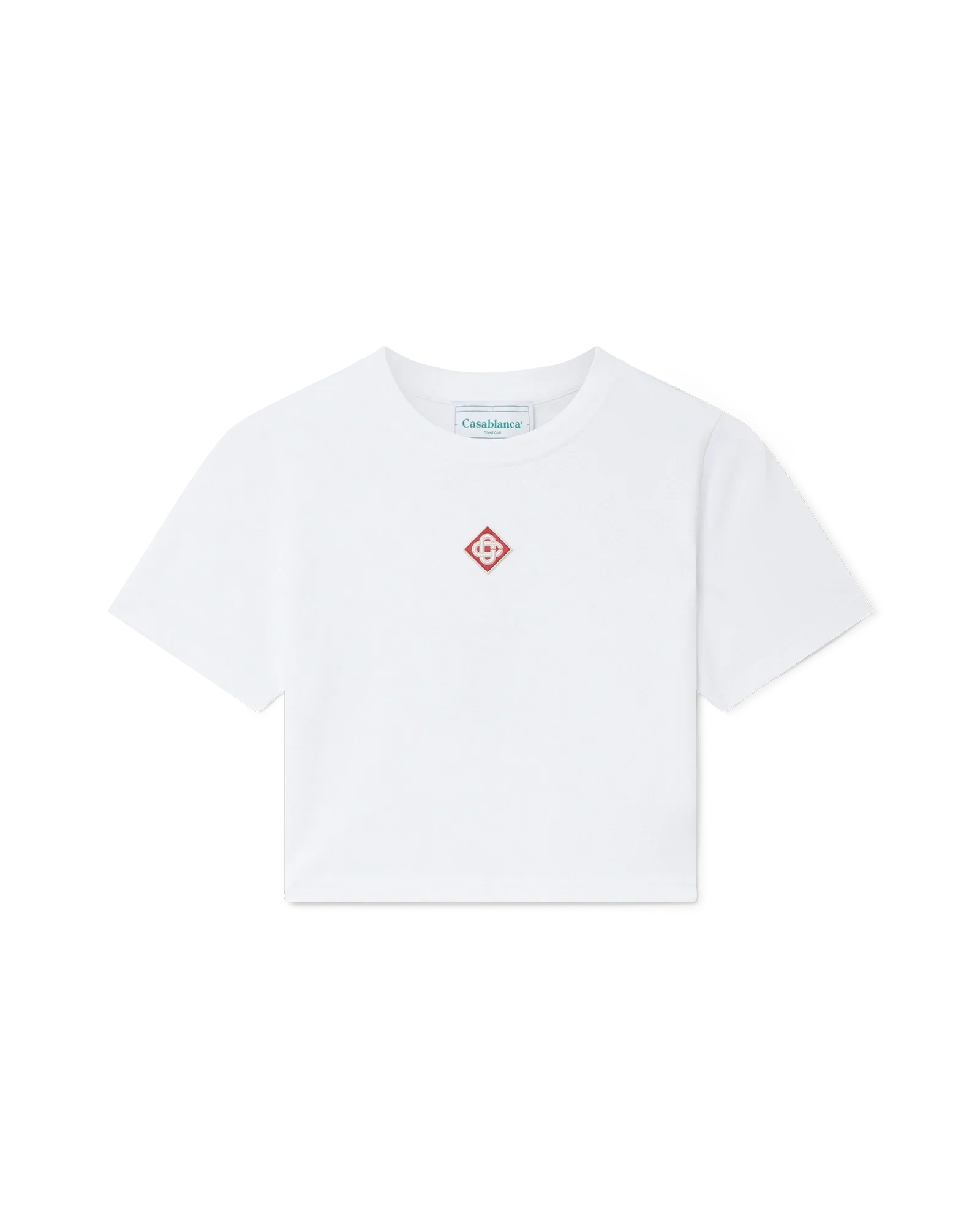 The diamond logo stretch t-shirt is a short-style women's design, crafted from a cotton blend fabric featuring the house's signature diamond logo on the chest. Completed with short sleeves, and a classic crew neck - designed to have a slim fit and to finish above the navel.
