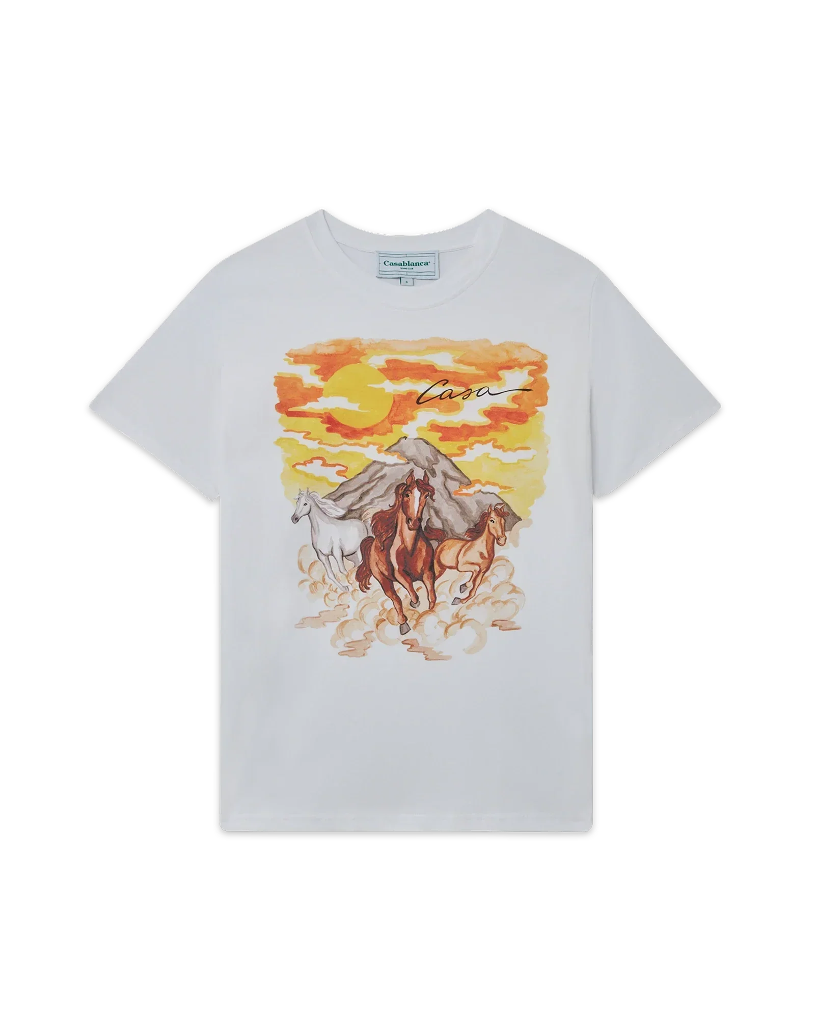 The Chevaux Sauvages screen-printed organic cotton women's t-shirt features seasonal artwork incorporating Casablanca symbology. Completed with a classic crewneck, short sleeves and Casablanca Paris branded label, designed for a relaxed fit.